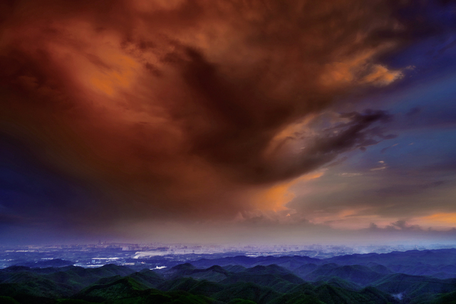 傍晚,城市上空的云层