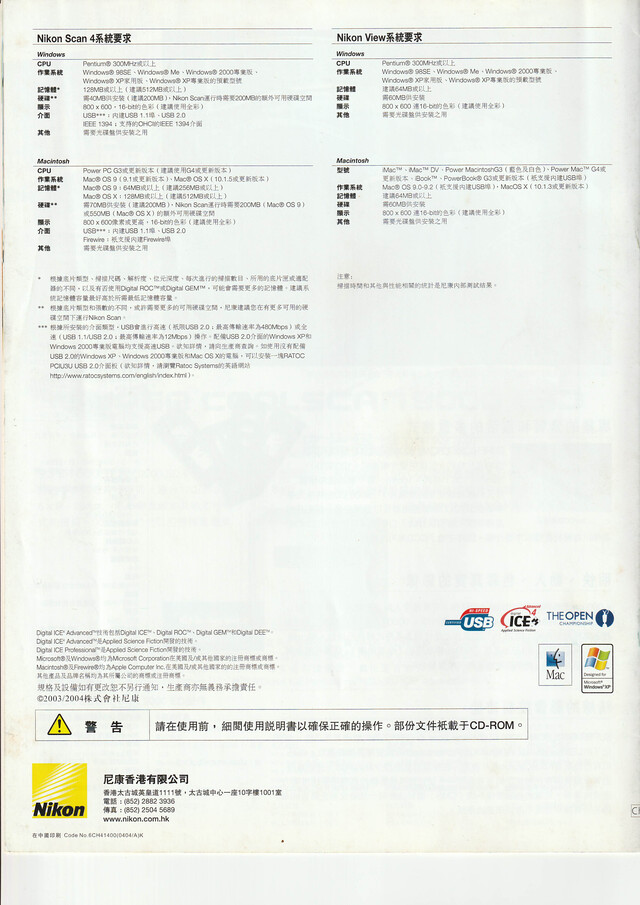 《Nikon Super Coolscan 9000/5000/V ED扫描仪》,2004,全12页。
