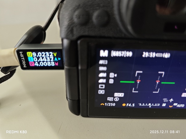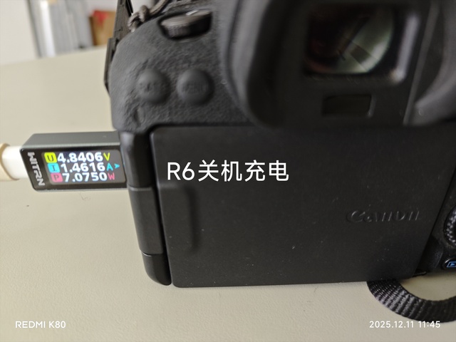 请问楼主你关机充电功率是多少W?,我试了下R7,用PD充电宝,关机充电是7W,开机就不充电了,显示为5W,相机的待机耗电功率这么高吗?。这个充电宝只能显示功率,不能显示其它参数。