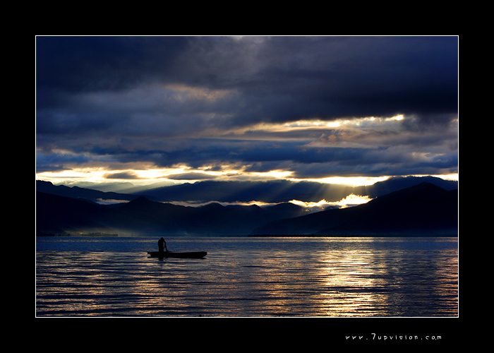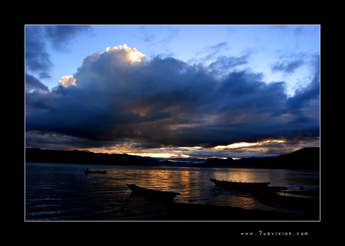 泸沽湖日出。