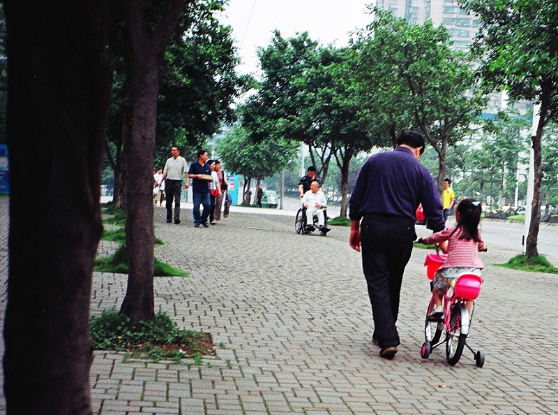 路边遇见一父亲推着女儿的自行车,正好与一儿子推着父亲的轮椅相遇。 人类生生不息,靠的是一种传承。 ![]() |