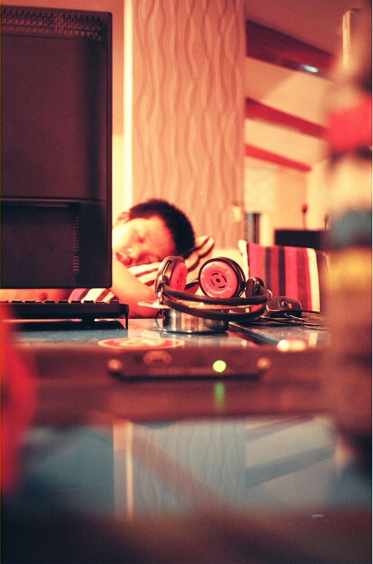 网吧里熟睡的学生