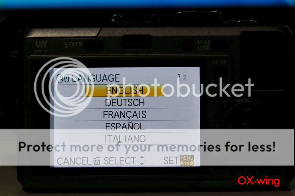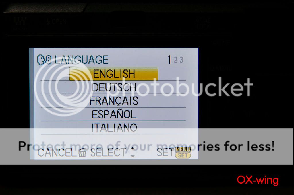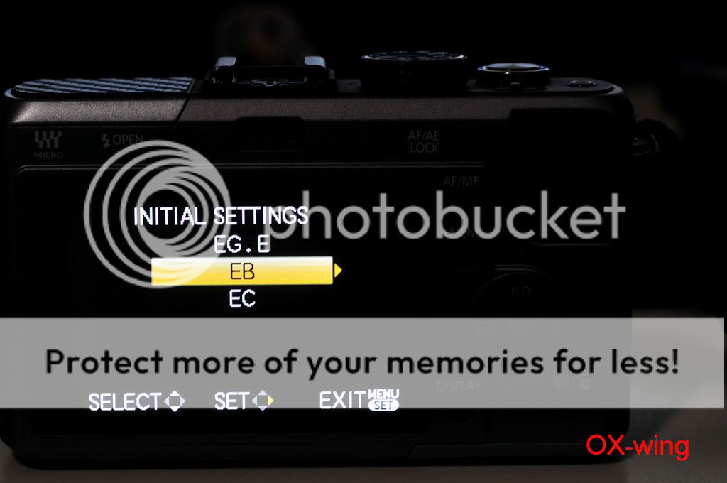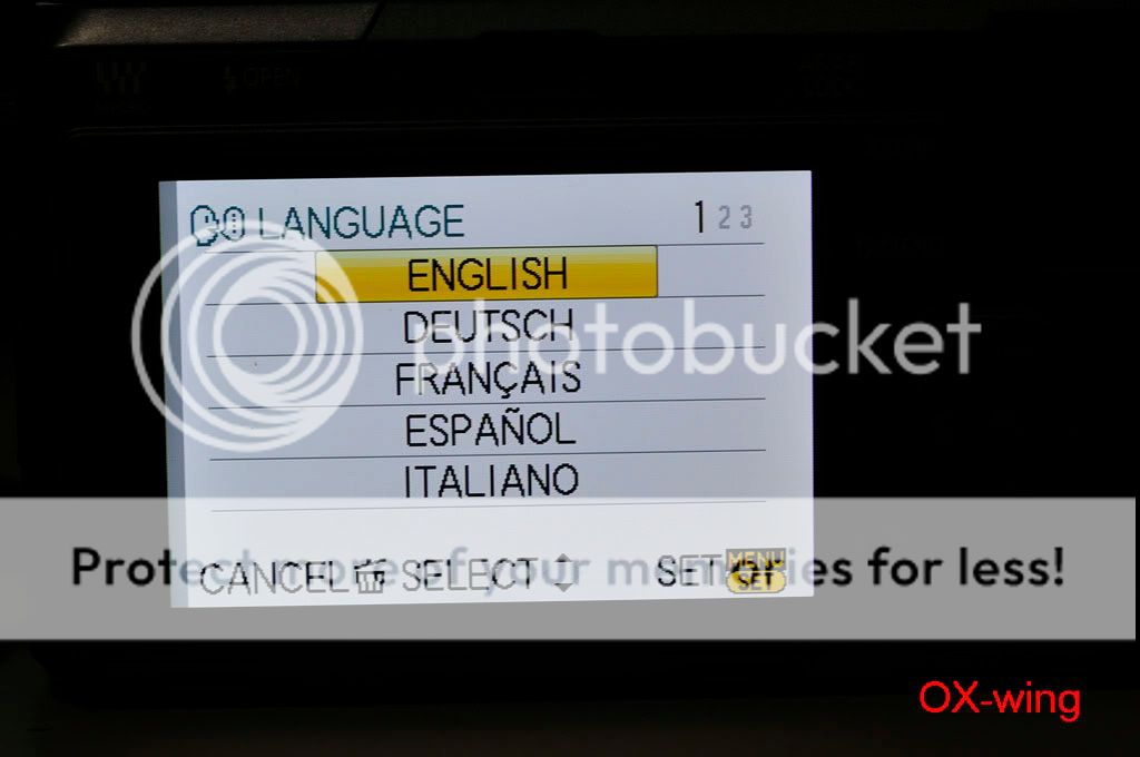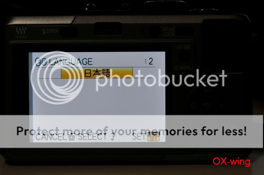 /sorthread.php?threadid=682430&pagenumber=1 按照“老程序員”的方法: 1、电源开关处于“OFF”,模式转盘置于“P”档,驱动模式杆置于“单拍”; 2、同时按住“AF/AE LOCK”按钮和“DISPLAY”按钮,用手指将电源开关从“OFF”推向“ON”----开机; 3、按一下“PLAYBACK”按钮; 4、同时按住“AF/AE LOCK”按钮和“ISO”(^方向)按钮,用手指将电源开关从“ON”推向“OFF”----关机,这时LCD上显示一个三角形包围感叹号“!”; 5、电源开关从“OFF”推向“ON”----开机; 6、同时按住“MENU/SET”按钮和“WB”(>方向)按钮,用手指将电源开关从“ON”推向“OFF”----关机;这时LCD上显示“Initial Settings”;应该能够看到语言选择;一般“GT”是繁体中文,“GK”是简体中文,“PP”是英语; 7、按照LCD提示输入,“WB”(>方向)按钮,然后自动关机; 8、重新开机,屏幕上显示要求重新设定时间,应该菜单语言改过来了。 --------------------------------- 剛剛試了,機器是托人在香港買的,但是卻買到歐洲版,只有英文、發文、德文、日文等。 我的女友進入工程模式之後出現EG.E 、EB(這個是默認)、EC這三種選擇。 EG.E 和 EC是完全一樣~~~ 但是語言增加到三頁15樣,全是拉丁文。 所以最後還是改回EB算了~ 只有6樣,比較簡潔一點,因為都是用英文啦。 以下是過程~ 1.原來默認的菜單 ![]() 2.第二頁~ 總共只有六個語言 ![]() 3.黃色感嘆號(第四步) ![]() 4.工程模式~ 三種都是EG(English 嗎?)開頭~ 呵呵 ![]() 5.選了第一個EG.E ![]() 6.EG.E 第一頁~ ![]() 7.第二頁 ![]() 8.第三頁 ![]() 9。重設時間、拔電池~ 再次進入工程模式 ![]() 10~ 這次選EC(還以為帶個C 就有CHinese,太傻太天真) ![]() 11.Ok ![]() 12~EC第一頁 ![]() 13.第二頁 ![]() 14.第三頁~ 跟前面的EG.E 一樣!沒有仔細研究其他~ IMG]http://i560.photobucket.com/albums/ss46/oxwing2/My%20Gears/GF1/_MSP3807.jpg[/IMG] 15~ 還是用回EB好了~ 比較簡潔,看到雞腸就煩~ ![]() 16~ End ![]() 實驗結果~ 可以多次進入工程模式,只要每次都重設一下時間、日期。 然後拔出電池等一會再放回去就可以! 由於在美國只能買到歐美版,所以也是沒有中文~ 聽說V1.1之後進入了工程模式就每次關機都出現那個黃色感嘆號。大家還是後果自負好了! 呵呵 |