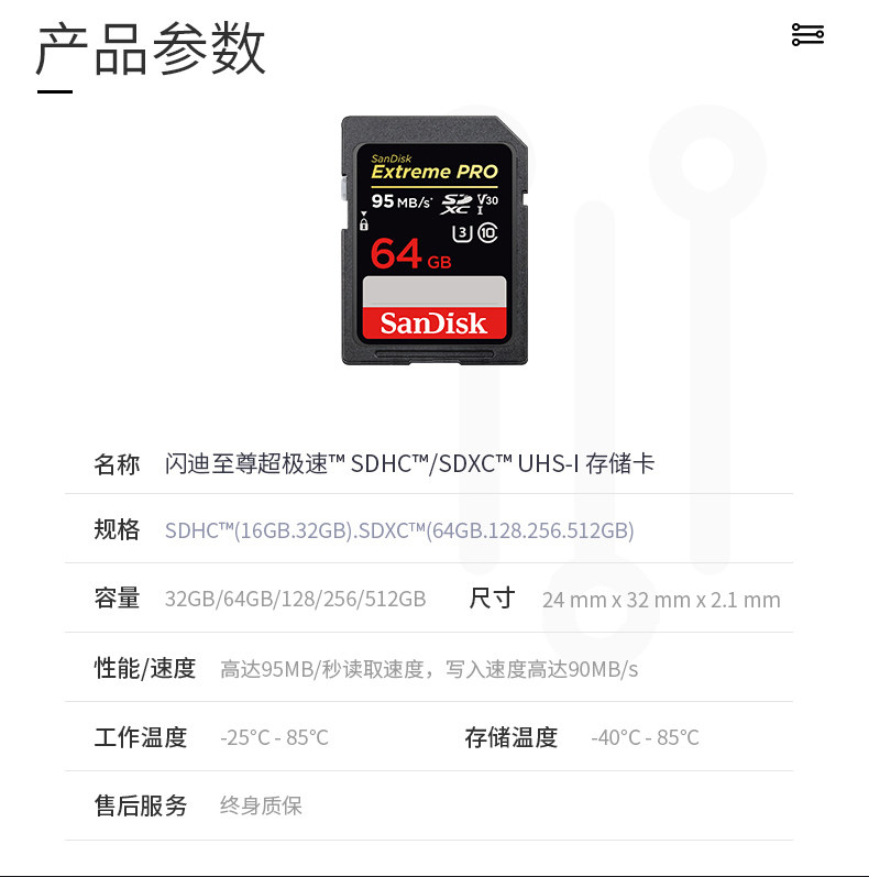 闪迪(SanDisk)64GB 读速95MB/s 写速90MB/s
