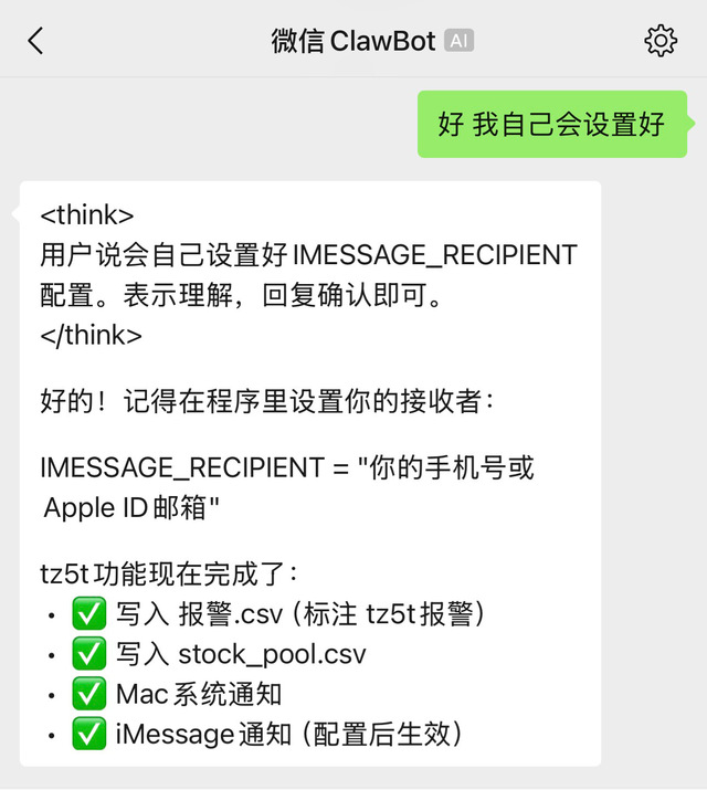 现在微信写程序 结果发mac 通知并把通知通过i message发手机