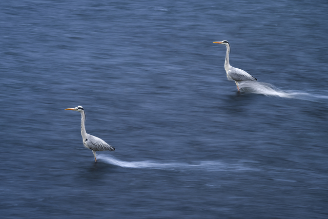 围观苍鹭洗脚