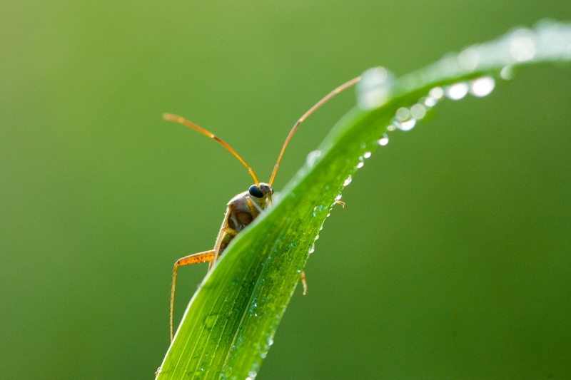 晨露中等待朝阳晒干的小虫