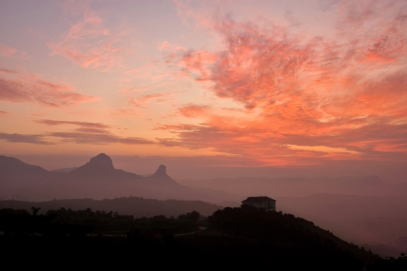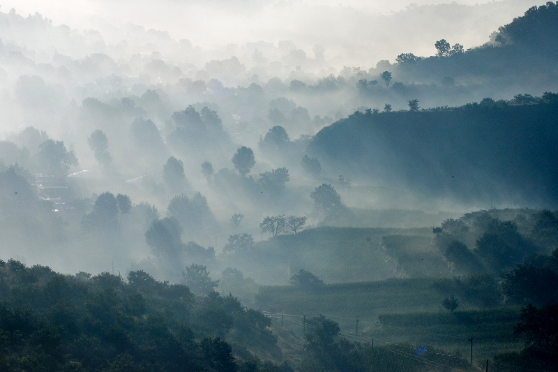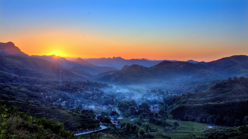 七星台的日出炊烟特别适合用水墨画卷的形式表达