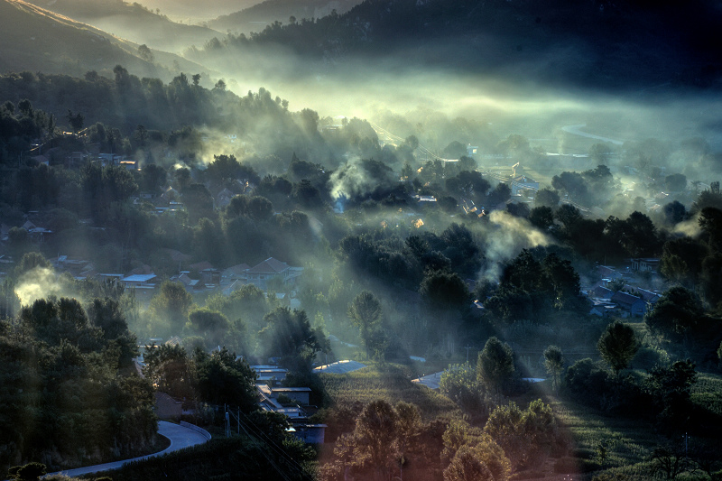 山村朝阳炊烟曲